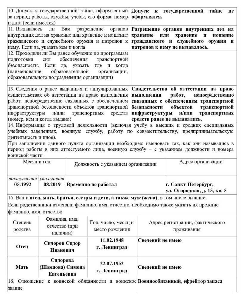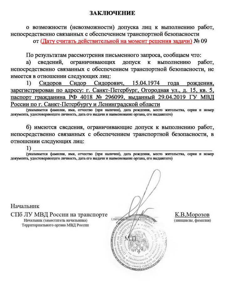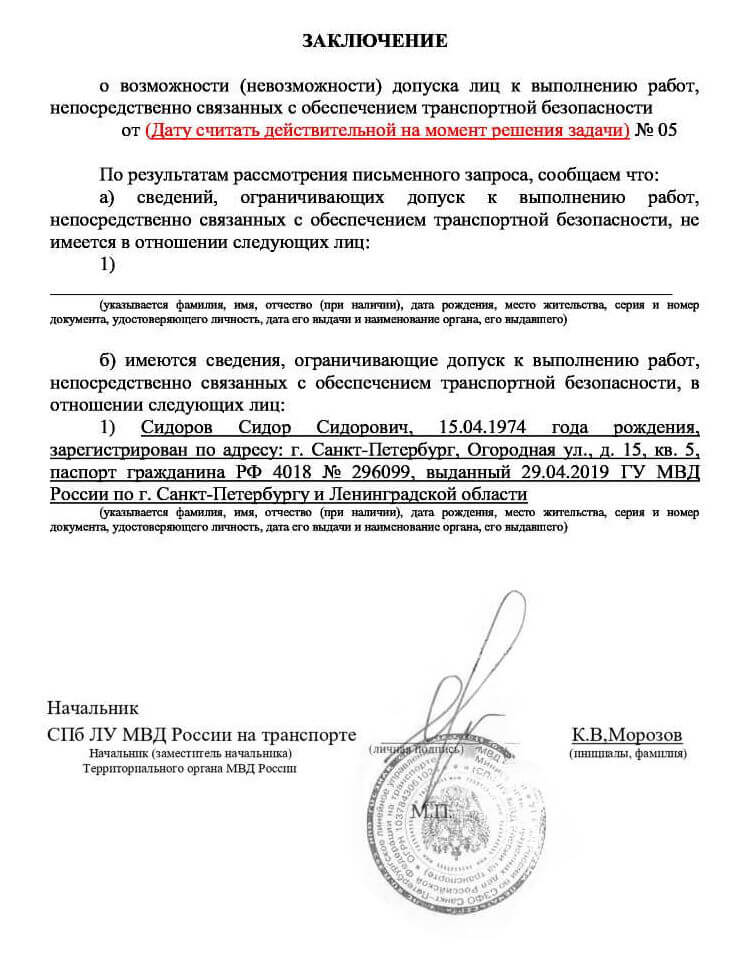 Практическая задача № 11.1. с ответами для работников субъекта транспортной инфраструктуры, подразделения транспортной безопасности, руководящих выполнением работ, непосредственно связанных с обеспечением транспортной безопасности ОТИ и ТС (категория 3). Необходимо проверить документы по ч.1 ст.10 ФЗ-16: паспорт, диплом об образовании, медицинскую справку, справку об отсутствии судимости. Убедиться в соответствии возраста, профессиональной пригодности и отсутствии ограничений для работы в данной сфере.