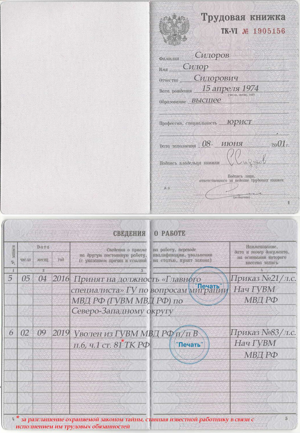 При приёме на работу сотрудников сил обеспечения транспортной безопасности определите их соответствие требованиям части 1 статьи 10 ФЗ-16 по представленным документам.
